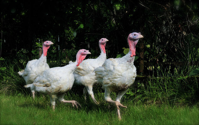 In der Aufzucht der Puten achten wir auf ausreichend Platz und Einstreu und den Auslauf der Tiere im Freien bei trockener Witterung. Ebenfalls selbstverständlich: Gentechnikfreie Futtermittel und keine Wachstumsförderer und Antibiotika. Das etwas langsamere Wachstum bewirkt eine bessere Fleischqualität.